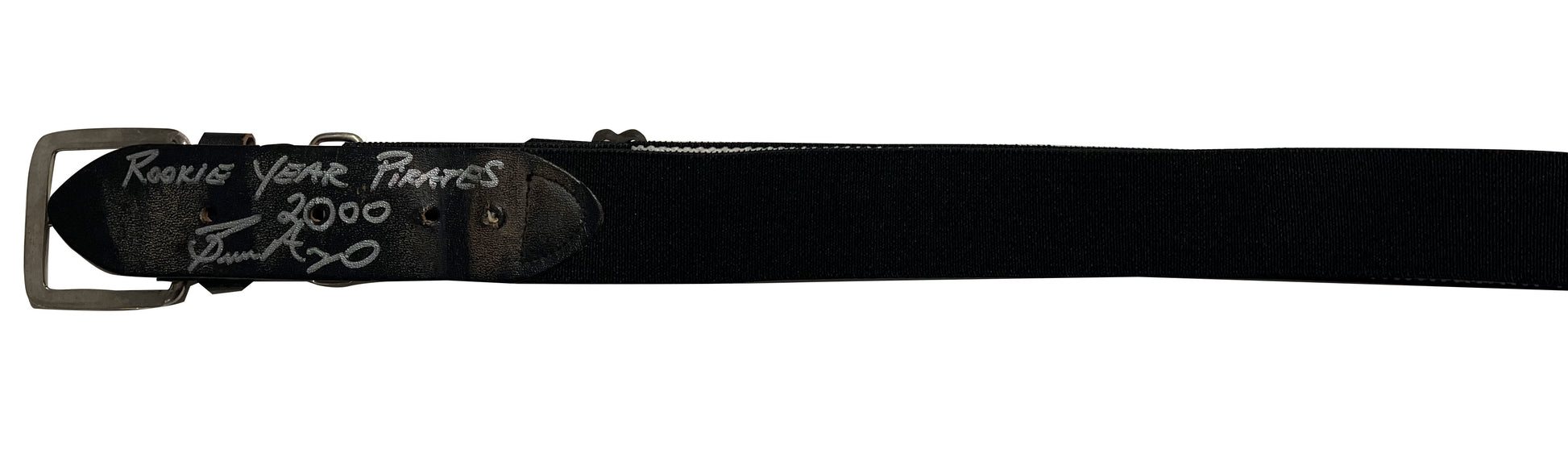 This Belt has been hand signed by Bronson Arroyo and inscribed "Rookie Year Pirates 2000." This item is LMC Authenticated and comes straight from Bronson Arroyo's closet.
