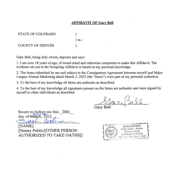 This Baseball has been dual signed by Steve Carlton and inscribed "HOF 94" and Lee Smith. This item comes straight from Gary Bell's closet. An affidavit is on file that Gary Bell had this baseball signed.
